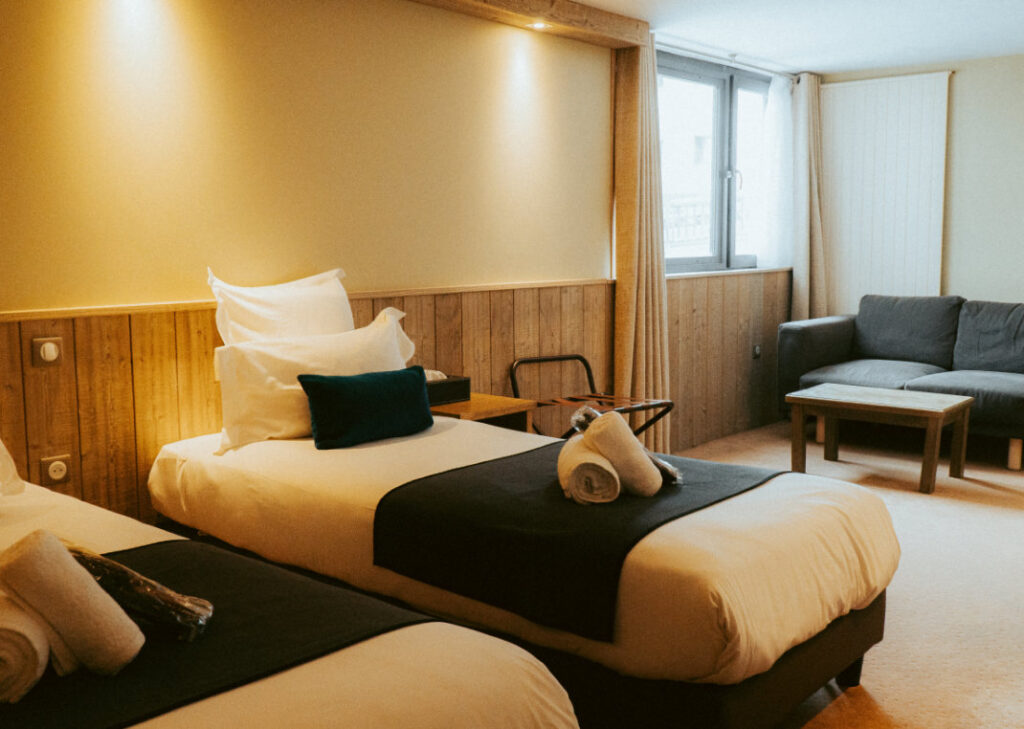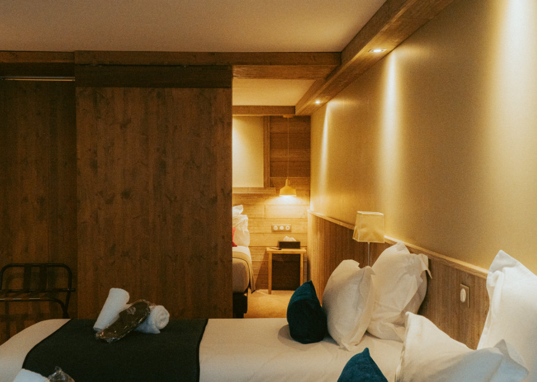 37 square meter on the first or second floor, Valley View. Set up for 4 people – a Queen size bed and 2 twin beds